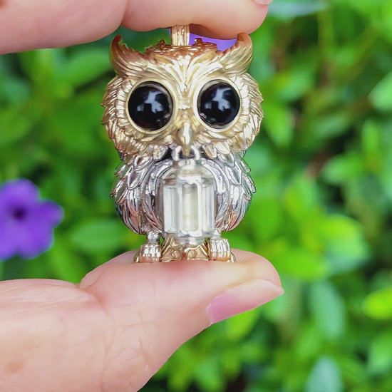 1 × Owl Trinity Pendant (Brass body + Obsidian eyes + Detachable spine, 53 g solid weight)